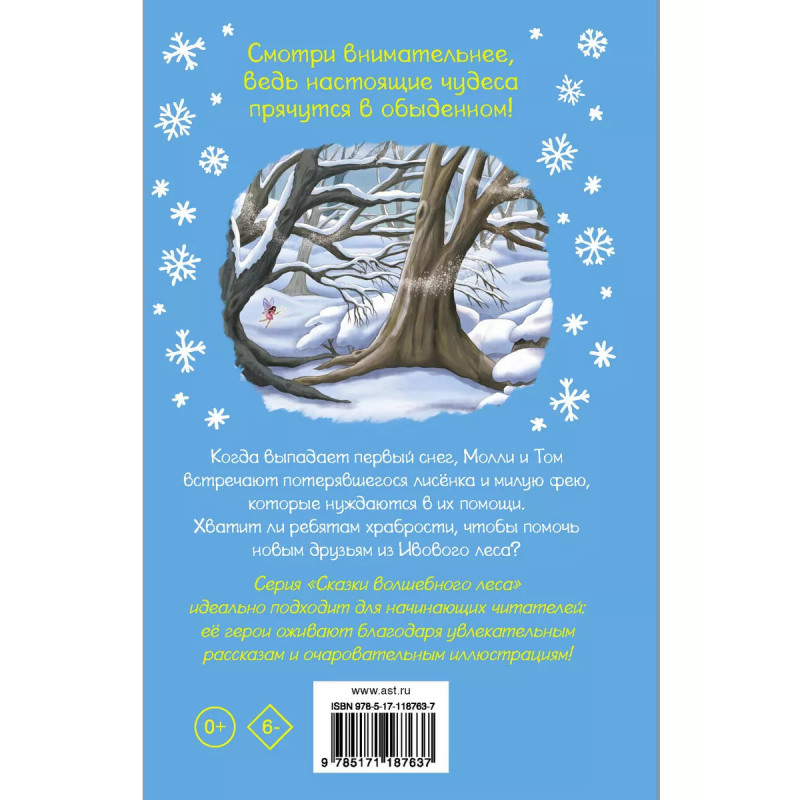 Когда выпадает первый снег, Молли и Том встречают потерявшегося лисёнка и милую фею, которая нуждается в их помощи. Хватит ли ребятам храбрости, чтобы помочь новым друзьям из Ивового леса? Серия "Сказки волшебного леса" идеально подходит для начинающих читателей: здесь очаровательные герои, милые животные и волшебные существа оживают благодаря увлекательным рассказам и очаровательным иллюстрациям!