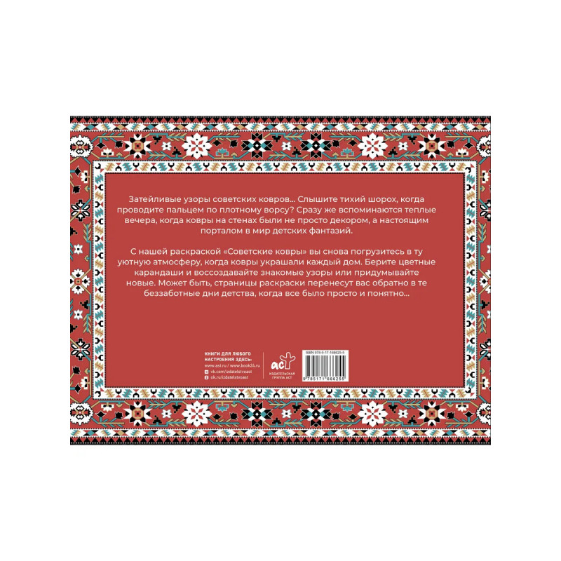 С нашей раскраской «Советские ковры» вы снова погрузитесь в ту уютную атмосферу, когда ковры украшали каждый дом. Берите цветные карандаши и воссоздавайте знакомые узоры или придумывайте новые. Добавьте яркости советским коврам с помощью красок или фломастеров – плотная бумага выдержит все ваши творческие эксперименты.