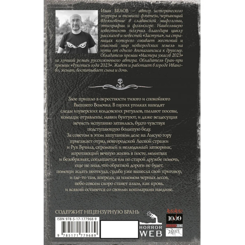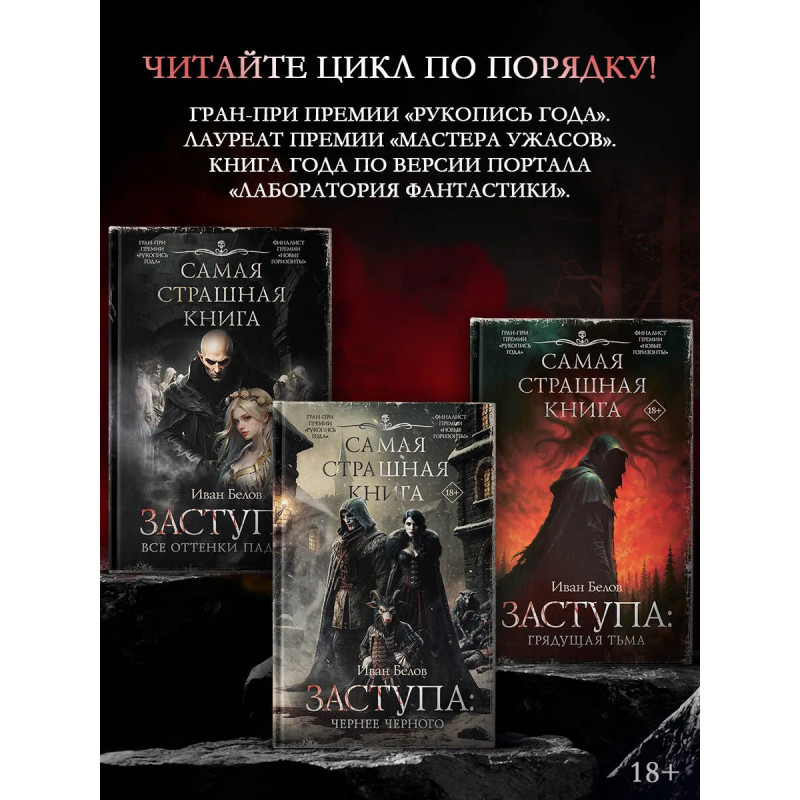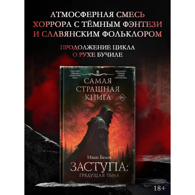 – Роман серии «Самая страшная книга» «Заступа: Грядущая тьма» продолжает культовый цикл, в котором тёмное славянское фэнтези переплетается с хоррором и черным юмором. – В окрестностях тихого Вышнего Волочка начинается нечто странное и страшное: ритуалы, отравленные колодцы, бунт нечисти и надвигающаяся тьма, с которой Руху Бучиле и Лесной страже придется столкнуться лицом к лицу. – Для поклонников культового цикла Анджея Сапковского «Ведьмак» и мрачного славянского фэнтези. – Цикл «Заступа» уже отмечен наградами: первая книга «Все оттенки падали» получила Гран-при «Рукописи года», победила в премии «Мастера ужасов» и стала Книгой года по версии «Лаборатории фантастики».