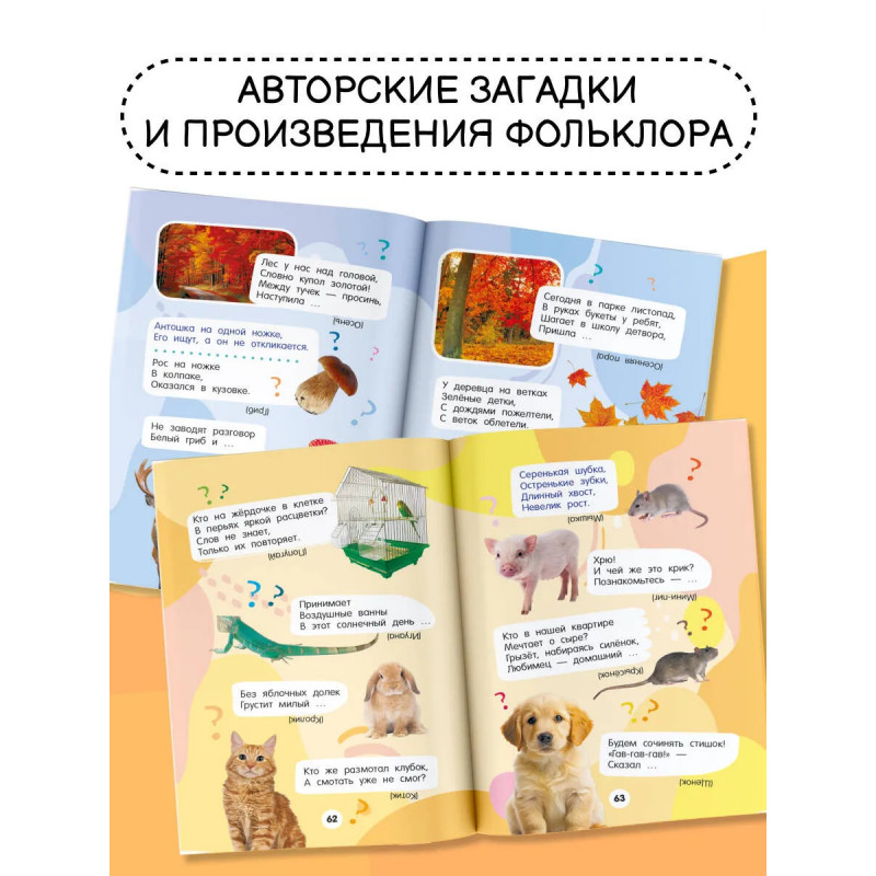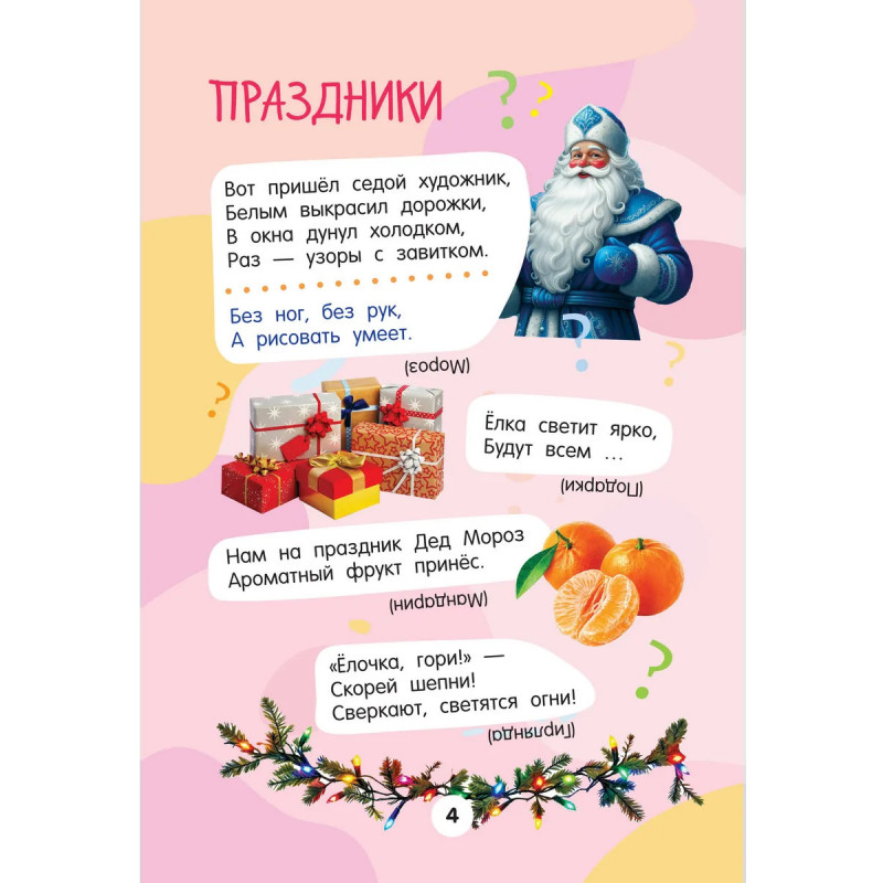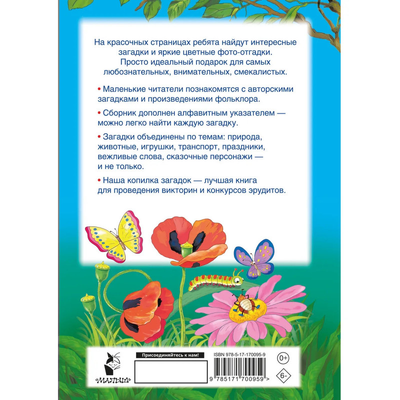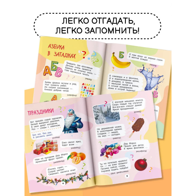 На красочных страницах ребята найдут интересные загадки и яркие цветные фото-отгадки. Просто идеальный подарок для самых любознательных, внимательных, смекалистых. Ведь разгадывать загадки — самый увлекательный способ познавать этот мир! 1000 простых и сложных, забавных и хитроумных авторских загадок в одной книге. В книге собраны как авторские загадки, так и произведения фольклора. Загадки — самый интересный способ познавать окружающий мир. Загадки объединены по темам: природа, животные, игрушки, транспорт, вежливые слова, праздники, сказочные персонажи — и не только. Отгадки, конечно, тоже есть! Книга отлично подойдёт как для проведения викторин и конкурсов эрудитов, так и для самостоятельного чтения.