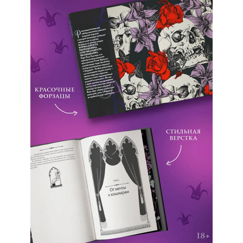 – Подарочное издание двух книг знаменитого цикла Керри Манискалко «Охотники за убийцами» под одной обложкой! – Продолжение романов «Охота на Джека-потрошителя» и « Охота на князя Дракулу». – Два напряженных детективных триллера young adult вдохновлены образами великого иллюзиониста Гарри Гудини и серийного убийцы Белого дьявола. Книги стали бестселлерами по версии The New York Times и USA Today. – Оформление: печать по обрезу, эффектные форзац и нахзац, 8 иллюстраций внутри, ляссе, новая верстка и фольгирование в лиловых и голубых тонах. – В комплекте — суперобложка с иллюстрацией от Valentaine и двусторонний постер от KarmaVirtanen.