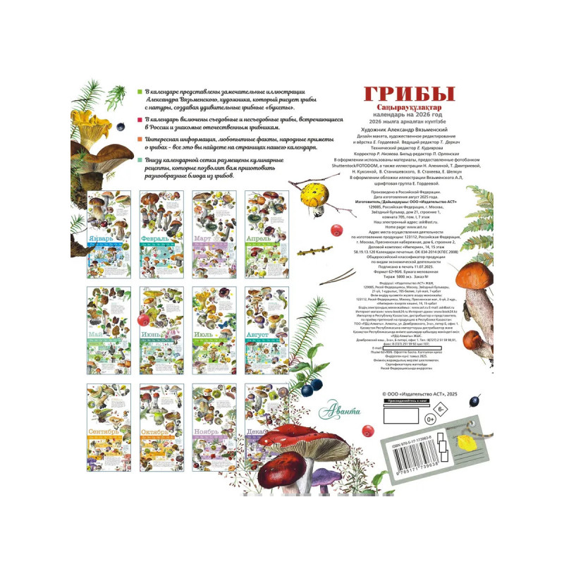 Характеристики Календарь Грибы 2026 год.