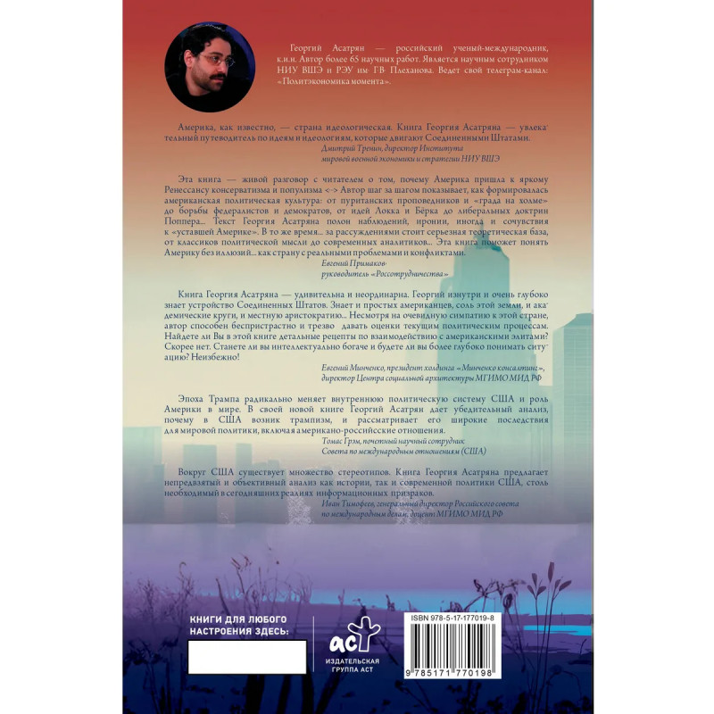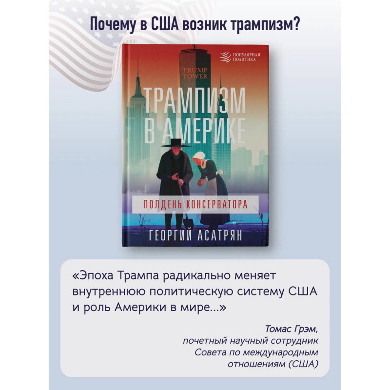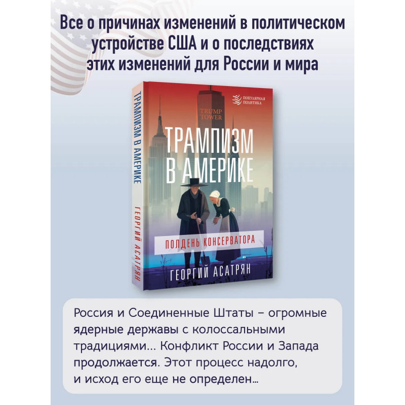 Работа Георгия Асатряна продолжает серию книг "Популярная политика", в которых освещаются актуальные геополитические вопросы в России и мире. Автор исследует политику действующего президента США Дональда Трампа с помощью глубокого исторического анализа американского консерватизма. В данном издании приведено полноценное описание этой темы начиная от пилигримов-пуритан и заканчивая современными элитами. Из этой книги читатель сможет узнать, каким образом сформировалась идеология трампизма, ассоциирующаяся с реднеками и противостоящая либерализму. Таким образом, Георгий Асатрян, основываясь на своем многолетнем академическом опыте, в том числе работе в США, разрушает стереотипы об этой стране и непредвзято описывает состояние росийско-американских отношений.
