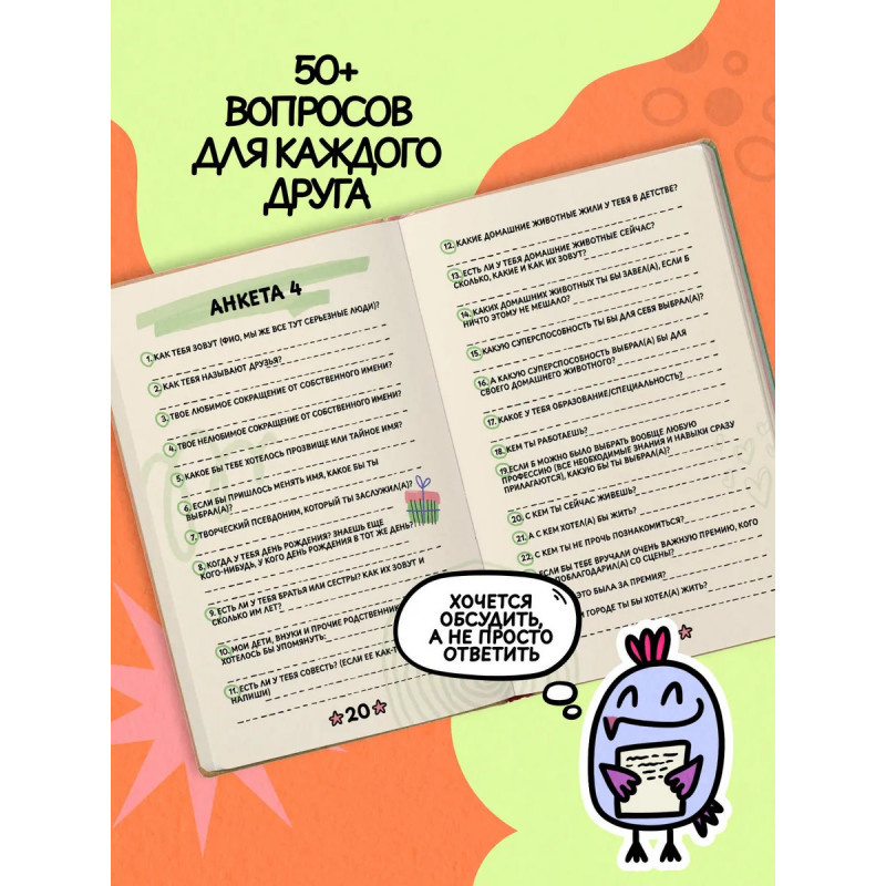 • Более 50 авторских вопросов для каждого друга, на которые захочется не просто ответить, а обсудить.