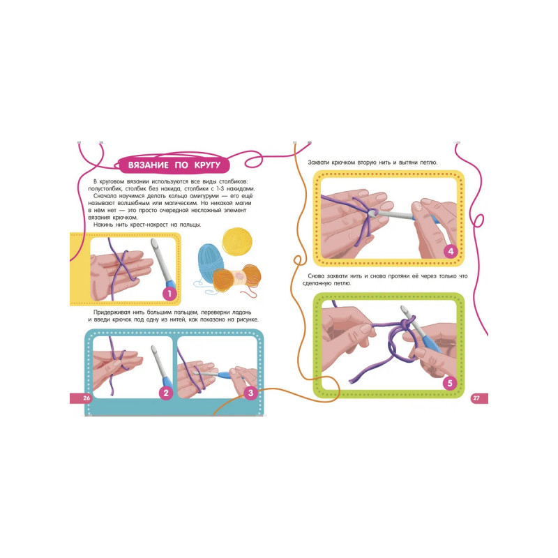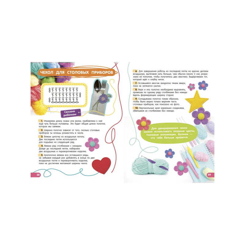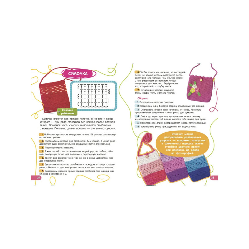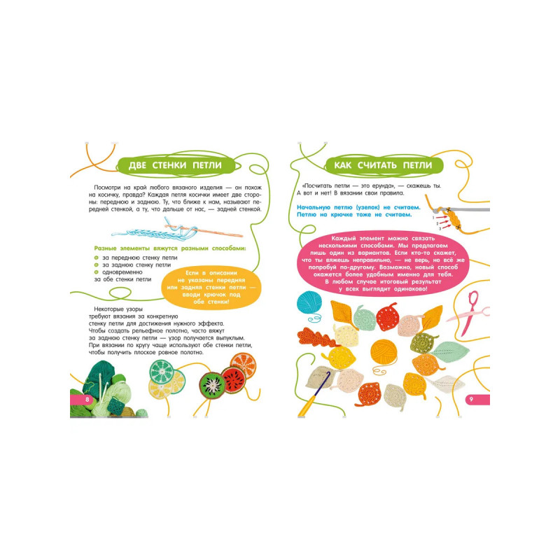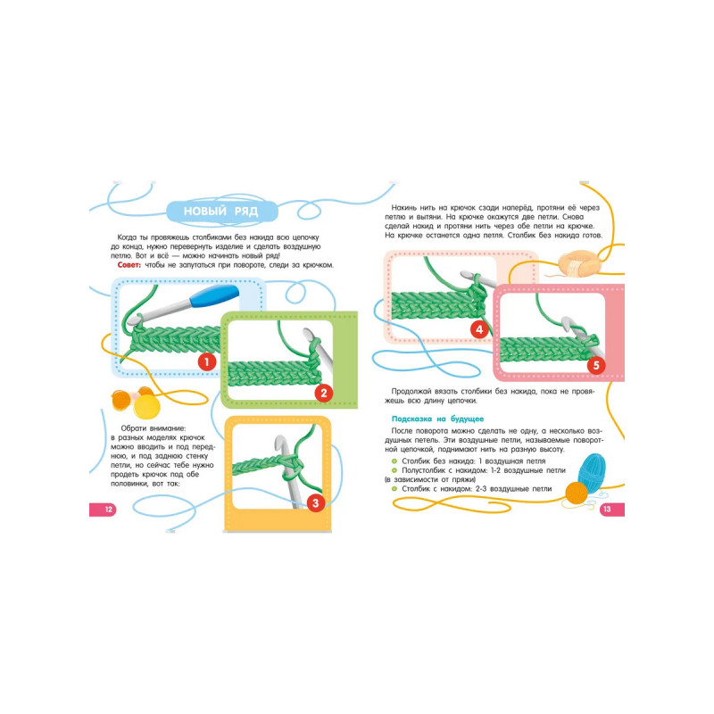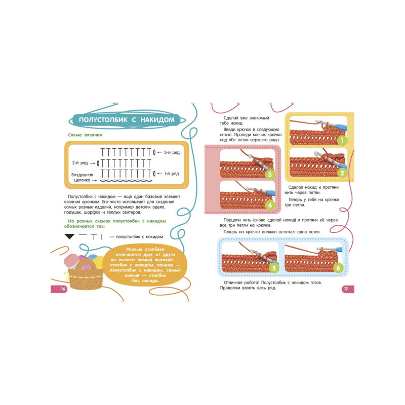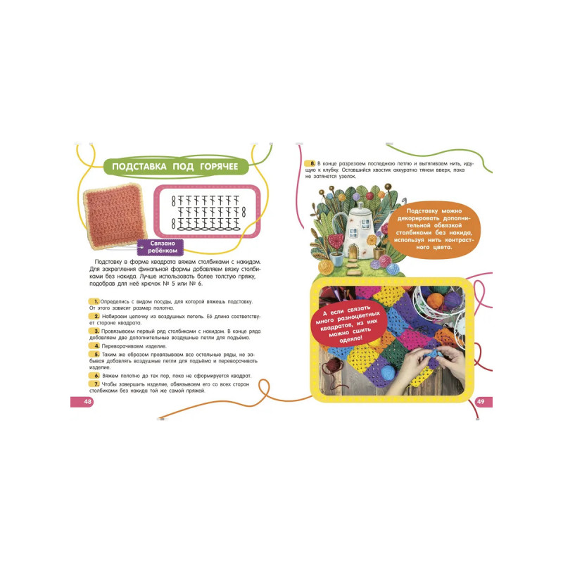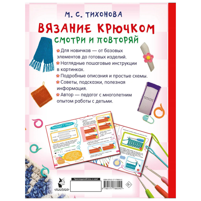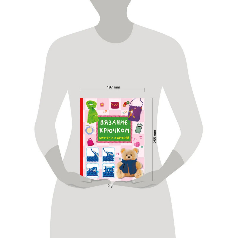 «Вязание крючком. Смотри и повторяй» — новая книга серии-бестселлера «Большой самоучитель для маленьких». Простые инструкции и наглядные пошаговые описания в картинках помогут ребёнку без труда выбрать крючок нужного размера и подходящие нитки, научиться делать петли и ряды, разобраться в схемах и, наконец, создать свои первые вязаные шедевры: шарф, сумочку, чехол для телефона и многое другое. Книга большого формата, имеет твердый переплёт, красиво оформлена — прекрасно подойдёт в качестве подарка на день рождения, 8 марта, Новый год, 1 сентября для дочери, внучки, племянницы, подруги, одноклассницы. Автор — педагог с многолетним стажем — не только обладает обширными теоретическими знаниями, но и умеет легко и просто объяснять ребёнку сложные вещи. 10-12 лет — идеальный возраст, чтобы научиться вязать! Вязание улучшает концентрацию внимания, развивает мелкую моторику, формирует новые нейронные связи головного мозга, снижает уровень стресса, дарит радость творчества, является ярким способом самовыражения.