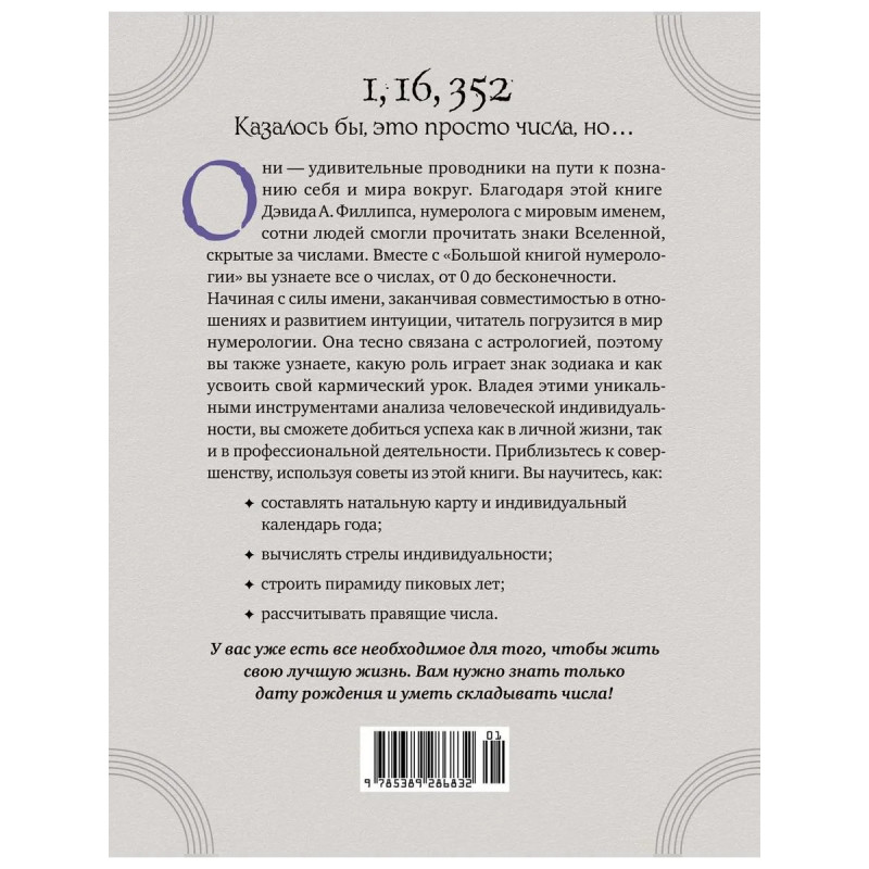 Они – удивительные проводники на пути к познанию себя и мира вокруг. Благодаря этой книге Дэвида А. Филлипса, нумеролога с мировым именем, сотни людей смогли прочитать знаки Вселенной, скрытые за числами. Вместе с «Большой книгой нумерологии» вы узнаете все о числах, от 0 до бесконечности.