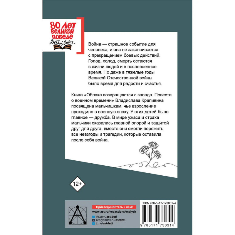 Война — страшное событие для человека, и она не заканчивается с прекращением боевых действий. Голод, холод, смерть остаются в жизни людей и в послевоенное время. Но даже в тяжелые годы Великой Отечественной войны было время для радости и счастья. Книга «Облака возвращаются с запада. Повести о военном времени» Владислава Крапивина посвящена мальчишкам, чье взросление проходило в военную эпоху. У этих детей было главное — дружба. В мире ужаса и страха мальчики оказались главной опорой и защитой друг для друга, вместе они смогли пережить все невзгоды и трагедии, которые оставила после себя война.