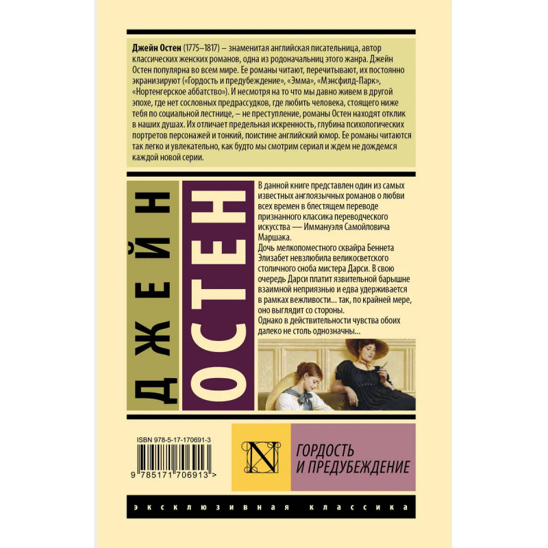 Гордость и предубеждение один из самых известных романов о любви. Его создательница Джейн Остен одна из самых выдающихся английских писательниц первой половины XIX века, автор таких произведений как Разум и чувства, Эмма и Доводы рассудка. К сожалению, настоящая слава пришла к писательнице уже после ее смерти. Роман Гордость и предубеждение неоднократно адаптировался для театральной сцены, кино и телевидения. В данном издании роман Гордость и предубеждение приведен в классическом переводе Иммануэля Самойловича Маршака. Издание в знаменитой серии Эксклюзивная классика теперь и в твердой обложке.