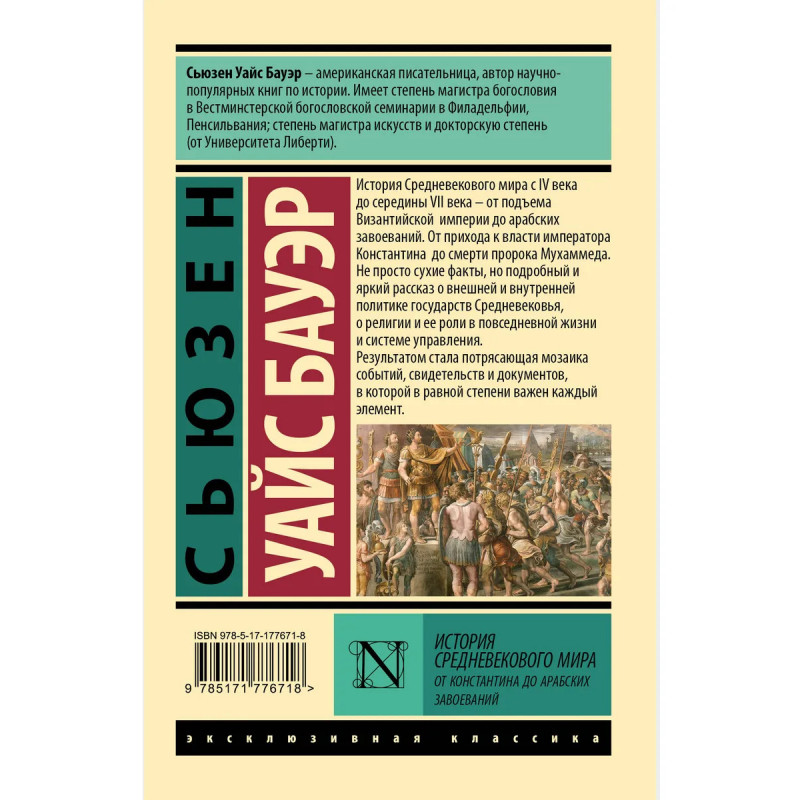 — От автора книг «История Древнего мира» и «История Ренессанса». — Доктор наук по специальности американистика Сьюзен Уайс Бауэр — известная писательница и автор нескольких научно-популярных книг по истории. — «История Средневекового мира» — это яркий, увлекательный и подробный рассказ о внешней и внутренней политике государств Средневековья, о религии и ее роли в повседневной жизни. — Данный том охватывает период с IV века до середины VII века — от прихода к власти императора Константина и подъема Византийской империи до арабских завоеваний и смерти пророка Мухаммеда. — Издание в серии «Эксклюзивная классика» — в удобном карманном формате и узнаваемом оформлении.