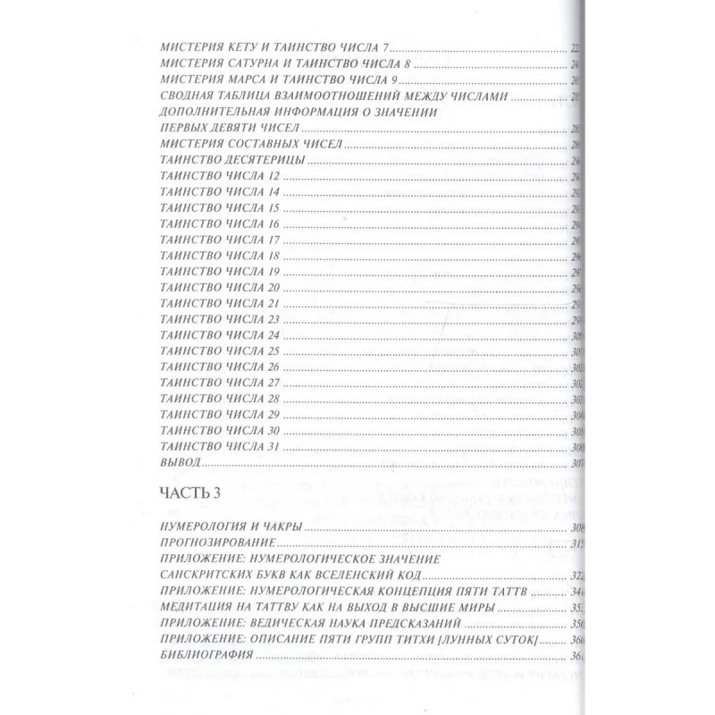 .В данном практическом руководстве дается систематизированное, проверенное веками учение о влияниях энергии чисел и слов на судьбу, характер и способности человека. В книге подробно описаны отношения нумерологических вибраций с аюрведой, астрологией, тантрическими и ведическими психотехниками и практиками самореализации. .В этой энциклопедической по своему содержанию книге приводятся уникальные астрологические мантры, дается анализ санскрита как вселенского кода грядущих событий, исследуются взаимосвязи чисел с чакрами, драгоценными камнями и планетарными силами, проявляющимися в образах полубогов и иерархов. Ведическая нумерология, являясь одновременно предсказательной наукой, священной мистерией и искусством трансформации, открывает путь, ведущий к гармонии, процветанию и совершенству. .Материал книги основан на таких писаниях, как Гаруда Пурана, Агни Пурана, Шат-чакра-нирупани, Йогатат-тваупанишад и других авторитетных трактатах по ведической и каббалистической системам нумерологии.