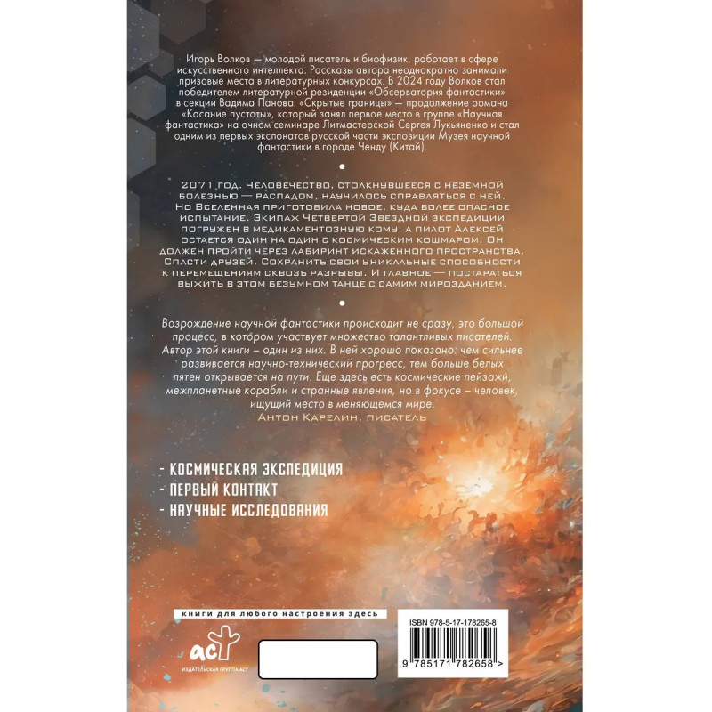 2071 год. Человечество, столкнувшееся с неземной болезнью — распадом, научилось справляться с ней. Но Вселенная приготовила новое, куда более опасное испытание. Экипаж Четвёртой Звёздной экспедиции погружён в медикаментозную кому, а пилот Алексей остается один на один с космическим кошмаром. Он должен пройти через лабиринт искажённого пространства. Спасти друзей. Сохранить свои уникальные способности к перемещениям сквозь разрывы. И главное — выжить в этом безумном танце с самим мирозданием.