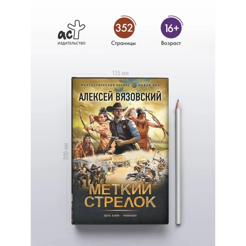 – Первая книга цикла «Меткий стрелок» — альтернативно-исторический роман о попаданце во времени с ярко выраженной эстетикой вестерна. – Главный герой переносится в эпоху Дикого Запада, где навыки стрельбы, холодный расчет и скорость реакции решают судьбу быстрее любых законов. – Исторические приключения сочетаются с альтернативной историей: знакомая эпоха показана через призму современного сознания и иных выборов. – Атмосфера вестерна — пыльные городки, оружие, дуэли и постоянная угроза — становится полноценным элементом сюжета, а не просто фоном. – Алексей Вязовский — российский писатель-фантаст и экономист-международник, автор популярных циклов «Сэнгоку Дзидай», «Микадо. Император из будущего», «Хроники Дангора».