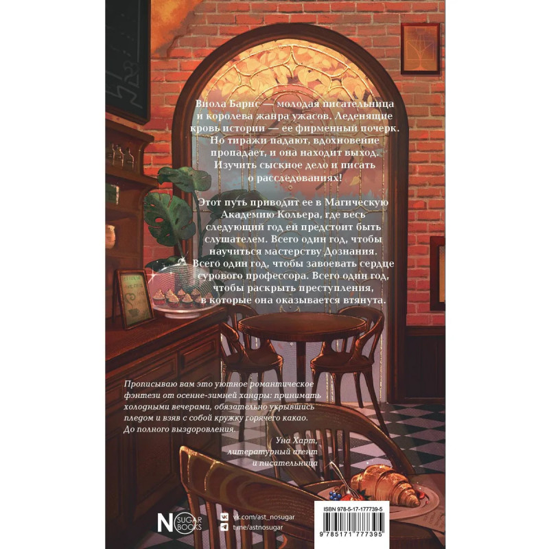 Виола Барнс — молодая писательница и королева жанра ужасов. Леденящие кровь истории — ее фирменный почерк. Но тиражи падают, вдохновение пропадает, и она находит выход. Изучить сыскное дело и писать о расследованиях! Этот путь приводит ее в Магическую Академию Кольера, где весь следующий год ей предстоит быть слушателем. Всего один год, чтобы научиться мастерству Дознания. Всего один год, чтобы завоевать сердце сурового профессора. Всего один год, чтобы раскрыть преступления, в которые она оказывается втянута.