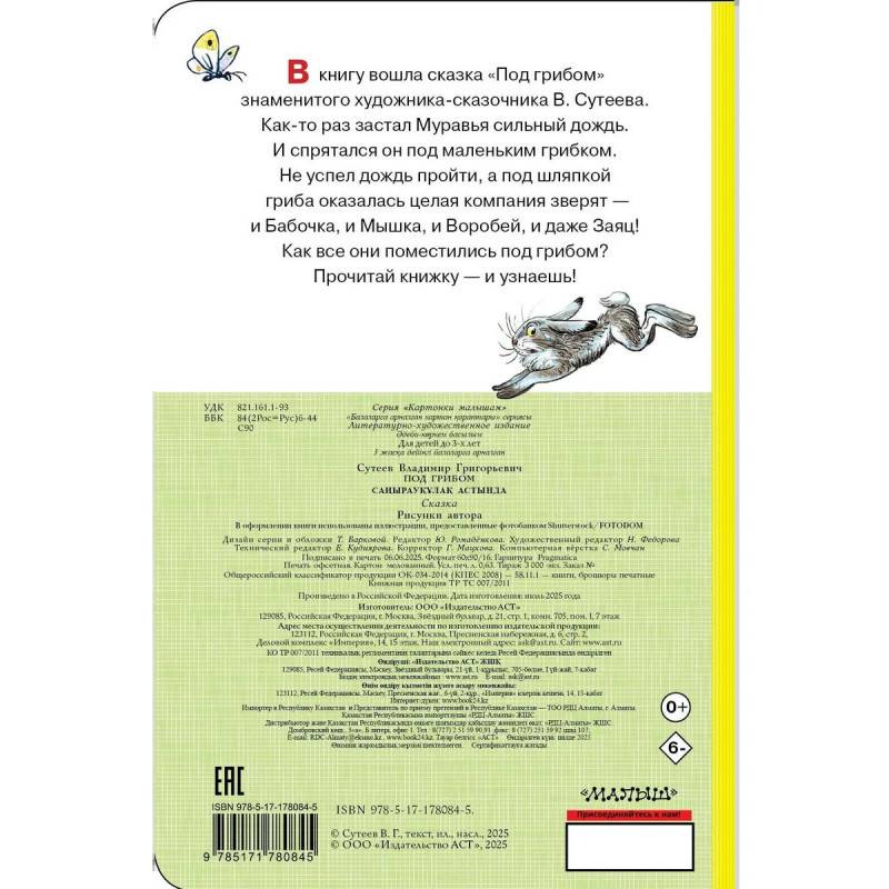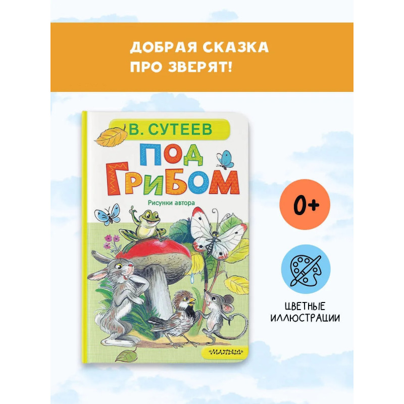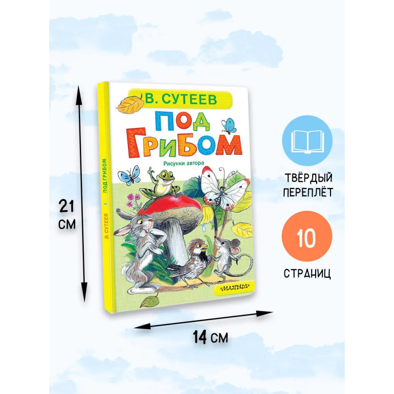 В книгу вошла сказка "Под грибом" знаменитого художника-сказочника В. Сутеева. Как-то раз застал Муравья сильный дождь. И спрятался он под маленьким грибком. Не успел дождь пройти, а под шляпкой гриба оказалась целая компания зверят — и Бабочка, и Мышка, и Воробей, и даже Заяц! Как все они поместились под грибом? Прочитай книжку - и узнаешь!