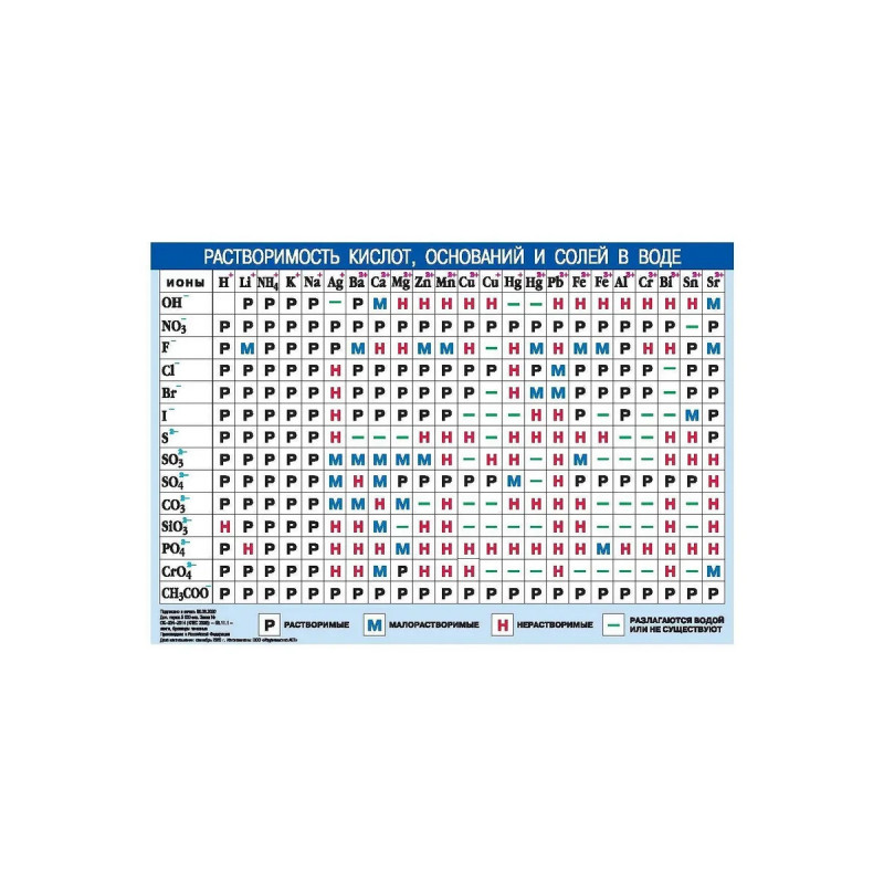 Периодическая система химических элементов Д.И.Менделеева. Растворимость кислот,