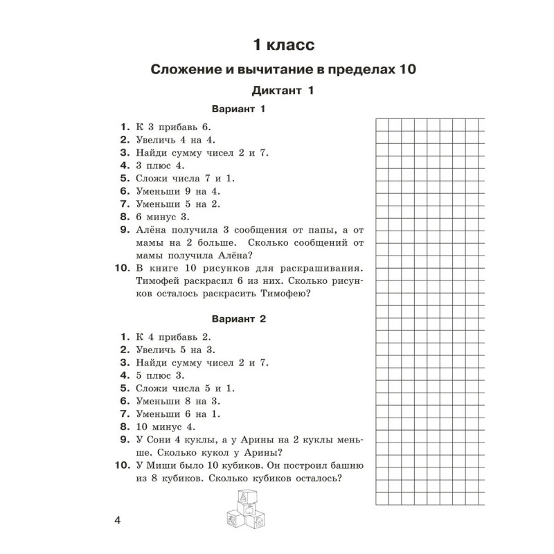 Характеристики Математические диктанты. Устный счёт. 1-2 классы.