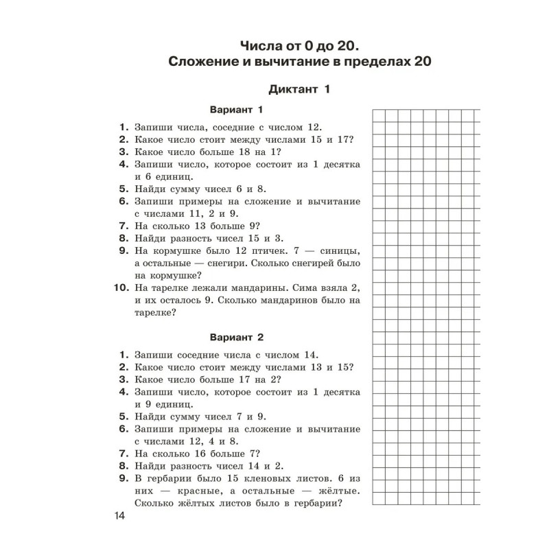 Математические диктанты. Устный счёт. 1-2 классы.