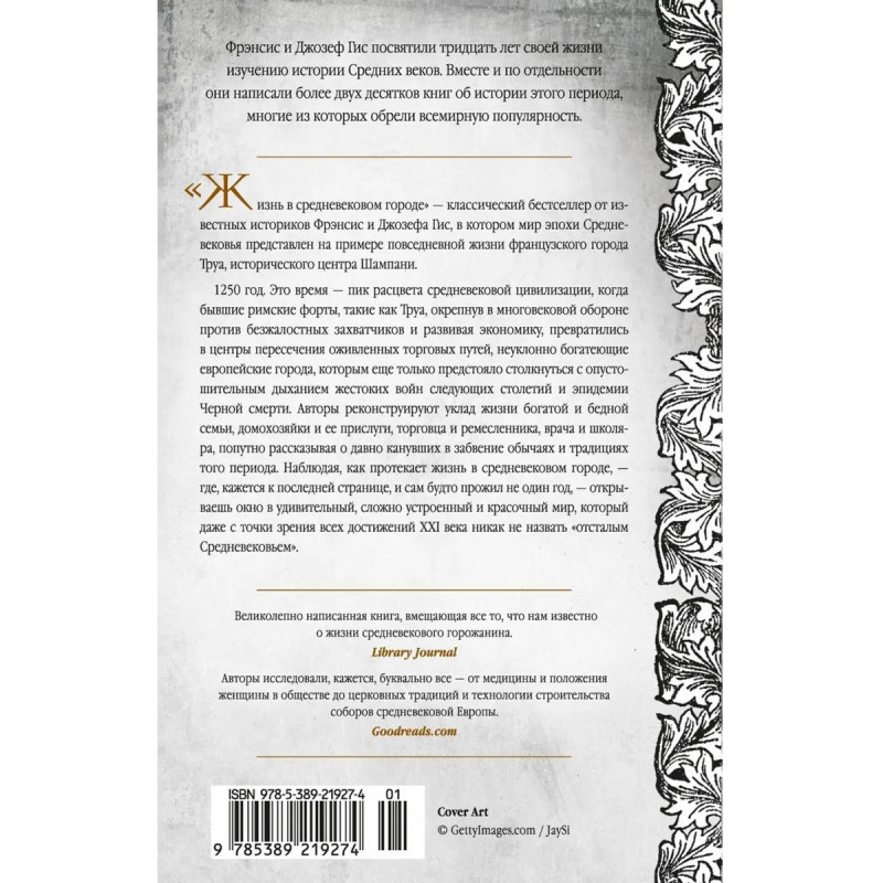 «Жизнь в средневековом городе» — классический бестселлер от известных историков Фрэнсис и Джозефа Гис, вкотором мир эпохи Средневековья представлен на примере повседневной жизни французского города Труа, исторического центра Шампани.