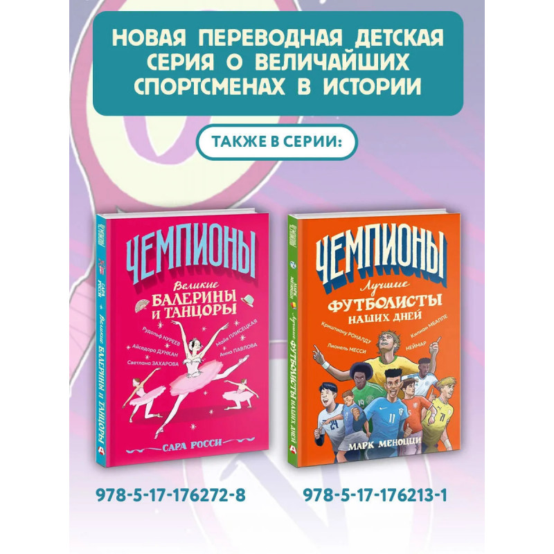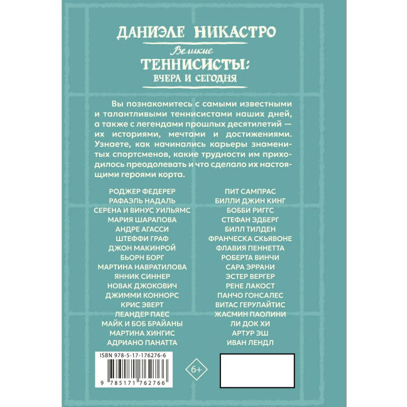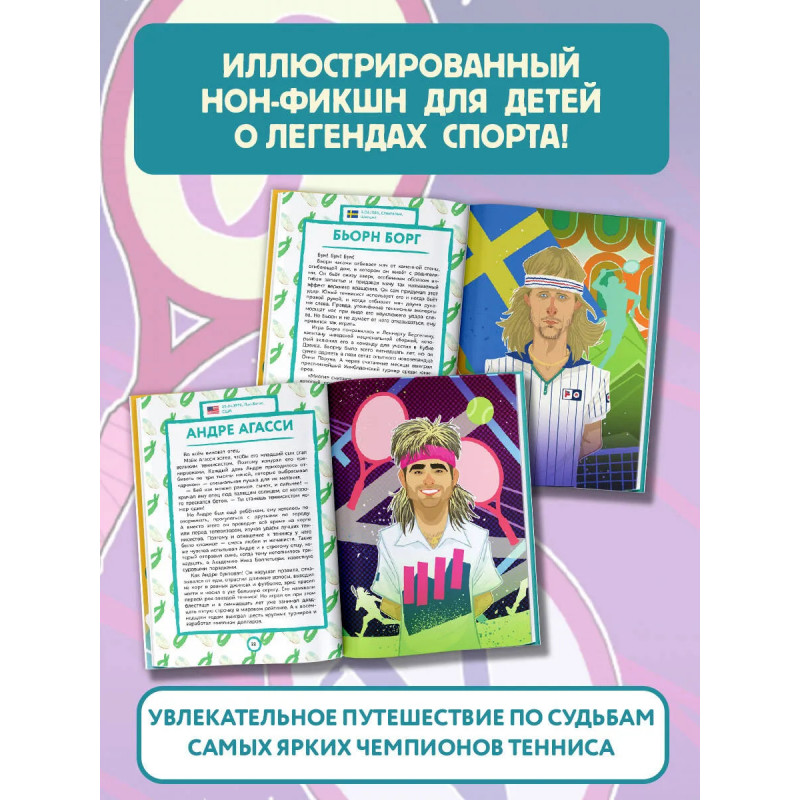 Почувствуйте магию тенниса и зарядитесь энергией больших побед вместе с биографиями великих теннисистов! Совершите увлекательное путешествие по судьбам самых ярких звёзд корта — от Роджера Федерера и Рафаэля Надаля до Новака Джоковича и Янника Синнера, от Марии Шараповой и сестёр Уильямс до Штеффи Граф и Мартины Навратиловой, от Джона Макинроя и Бьорна Борга до Андре Агасси и Рене Лакоста. Познакомьтесь с историями мировых кумиров, узнайте, как начинались их головокружительные карьеры, через какие испытания и разочарования им пришлось пройти, чтобы однажды стать настоящими героями миллионов.