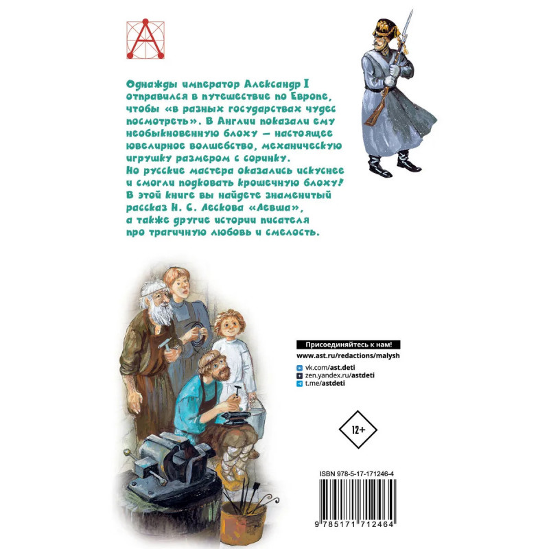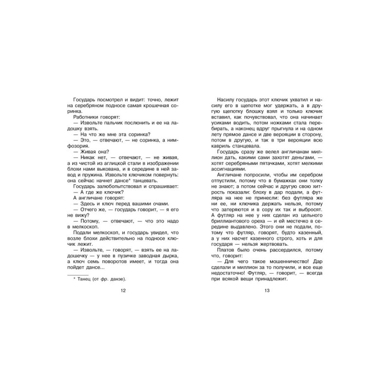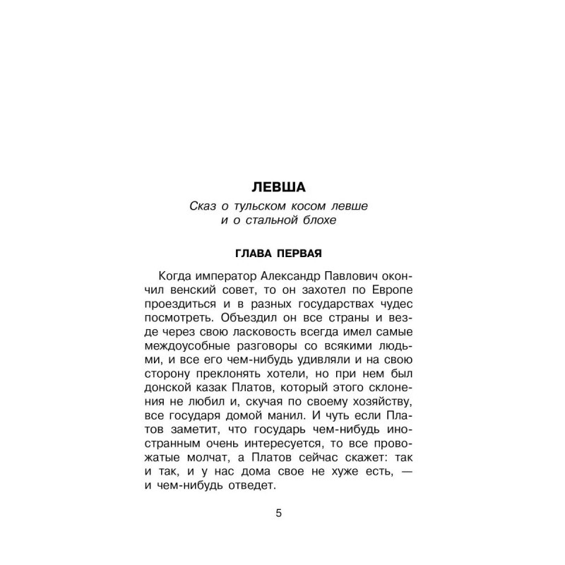 Однажды император Александр I отправился в путешествие по Европе, чтобы «в разных государствах чудес посмотреть». В Англии показали ему необыкновенную блоху — настоящее ювелирное волшебство, механическую игрушку размером с соринку. Но русские мастера оказались искуснее и смогли подковать крошечную блоху! В этой книге вы найдете знаменитый рассказ Н. С. Лескова «Левша», а также другие истории писателя про трагичную любовь и смелость.