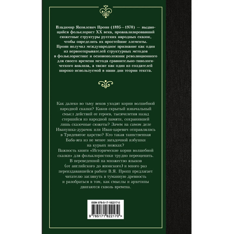 – Книга «Исторические корни волшебной сказки» показывает, что волшебная народная сказка появилась из реальной жизни: древних обрядов, мифов и представлений о мире, которые со временем превратились в сюжеты про Ивана-дурачка, Ивана-царевича, Бабу Ягу и Тридевятое царство. – Владимир Пропп простым и понятным языком объясняет, почему герои делают именно те шаги, к которым мы привыкли как к «сказочным»: запреты, испытания, награды и наказания оказываются отражением старинных обычаев и верований. – Книга «Исторические корни волшебной сказки» опирается прежде всего на русский фольклор, но при этом автор сравнивает его с материалами разных народов, так что читатель видит общую картину развития мифов и архетипов в разных культурах. – Это не узкоспециальное исследование только для ученых, а текст, который будет интересен всем, кто любит сказки и хочет понимать, откуда они взялись.