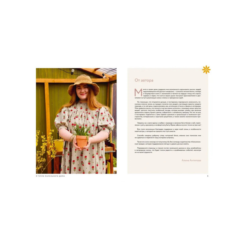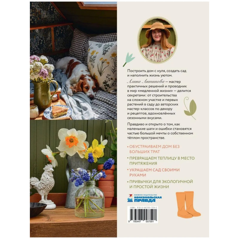 От мечты о маленьком доме за городом до уютной жизни в нём: выбор участка, первые шаги в строительстве и сад, который радует круглый год. Алина Антипова, мастер практичных решений и проводник в мир «медленной жизни», делится личным опытом — о плюсах и минусах загородного быта, находках и ошибках, о том, как создать уют в ограниченном пространстве. На страницах книги основы садоводства, растения для «ленивого сада» и готовые схемы миксбордеров. Все о теплице, включая чертежи, и о садовом декоре своими руками: кашпо, табличках, стильной бочке, опоре для роз и фанерных гусях. Практическую часть идеально дополняют уникальные сезонные рецепты — от лазаньи из кабачков до заготовок кубиков для чая, — а также экологичные привычки, которые сделают даже самый маленький дом настоящим местом силы.