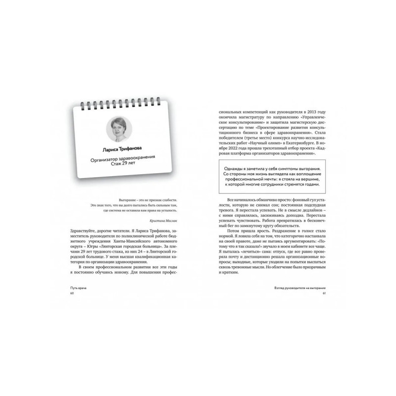 Быть врачом — значит ежедневно самоотверженно нести ответственность за жизнь других людей, не имея права на ошибку. Но тем, кто выбрал медицину как дело своей судьбы, тоже нужны помощь и поддержка.В новой книге практикующие врачи разных специальностей — терапевты, кардиологи, неонатологи, координаторы здравоохранения и многие другие впервые откровенно делятся тем, как столкнулись с профессиональным выгоранием и что именно помогло им справиться с внутренними кризисами и выстроить практику так, чтобы сохранить радость и силу профессии.Всем читателям, чей жизненный путь связан с медициной, эта книга даст ответ на вопрос, как соблюсти баланс и оставаться надежной опорой для своих пациентов.