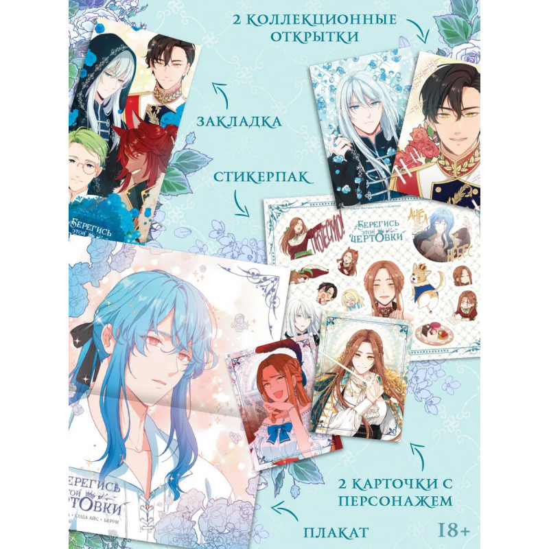 – Первый том суперпопулярной манхвы «Берегись этой чертовки». Лимитированное издание с уникальным мерчем: две коллекционные открытки, две карточки с главной героиней, постер, милейший стикерпак и закладка со всеми парнями из книги! – Более 900 млн читателей и 9 млн лайков на платформах по всему миру! На популярной корейской платформе KakaoPage оценка 10 из 10! – Манхва официально переведена на английский, японский, французский, китайский, тайский, а теперь и русский языки! – Автор, пишущий под псевдонимом Сода Айс, мастерски переворачивает не только классические клише жанра «исекай», но и в целом сентиментальную драму для девушек. Ее героиня – не просто сильная личность, а еще и взбалмошная, но крайне рациональная особа. – Для поклонников историй «Единственный конец злодейки – смерть», «Папа, я против этого брака» и «Лериана, невеста герцога по контракту»!