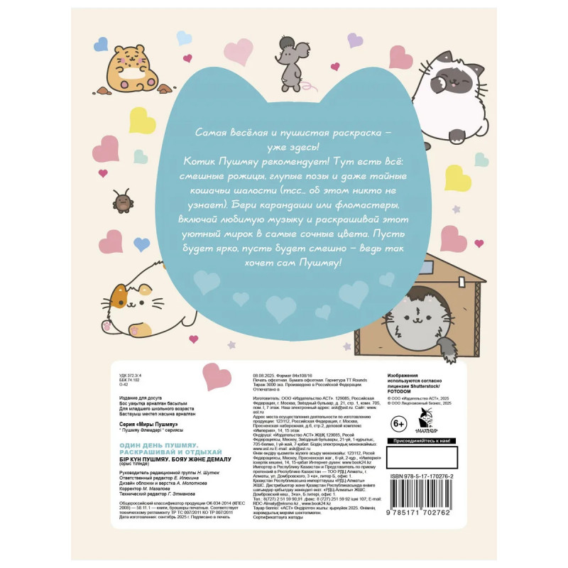 Характеристики Один день Пушмяу. Раскрашивай и отдыхай.
