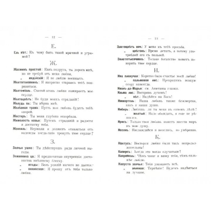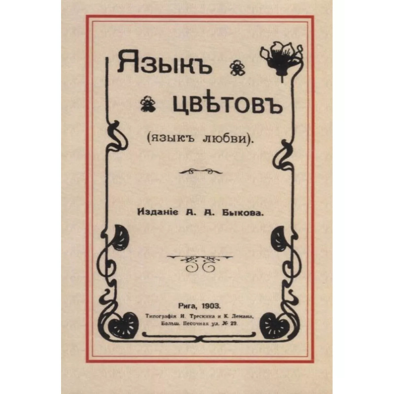 Язык цветов. Язык любви. Репринт с издания. Рига. А.А. Быков, 1903. .Словарь. Содержание статей - название цветка и что означает этот цветок в букете (в основном для любовных отношений). Около 400 статей.