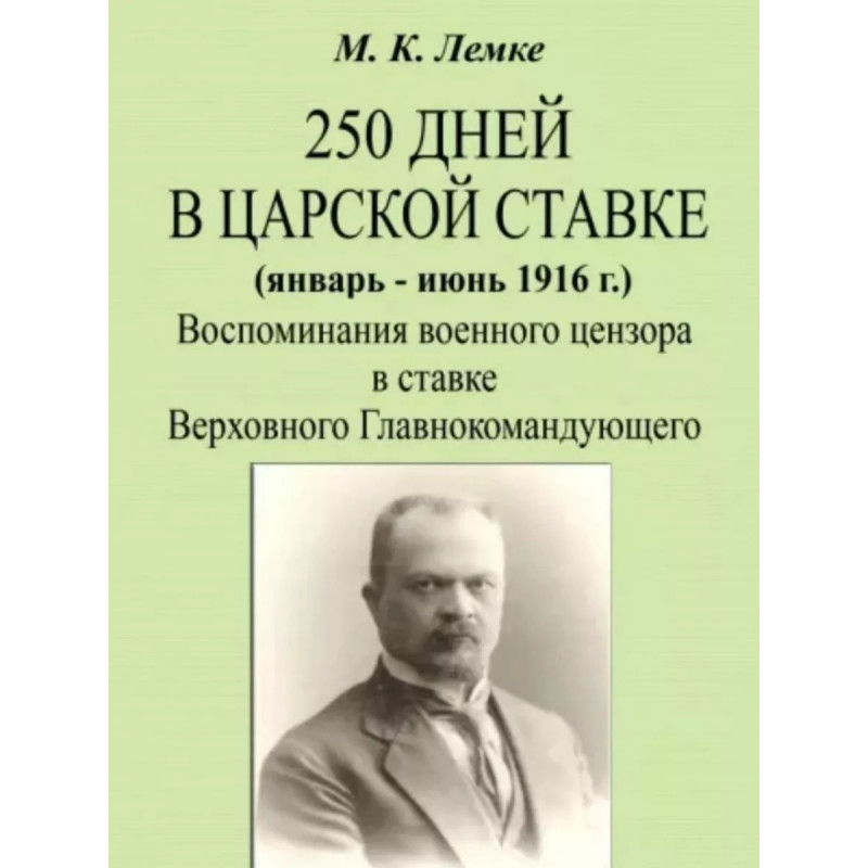 250 дней в царской ставке 1916. Воспоминания военного цензора в ставке Верховного Главнокомандующего. Лемке М.К. Михаил Константинович Лемке (1872 1923) российский историк русской журналистики, цензуры и революционного движения. В августе 1914 года был призван на службу. С 25 сентября 1915 по 2 июля 1916 года военный цензор в ставке Верховного Главнокомандующего. После февральской революции, в 19171918 годах был управляющим Экспедицией Заготовления Государственных Бумаг. С 1919 года член центральной редколлегии Госиздата. Тираж 30 экз. выполнен по технологии print-on-demand.