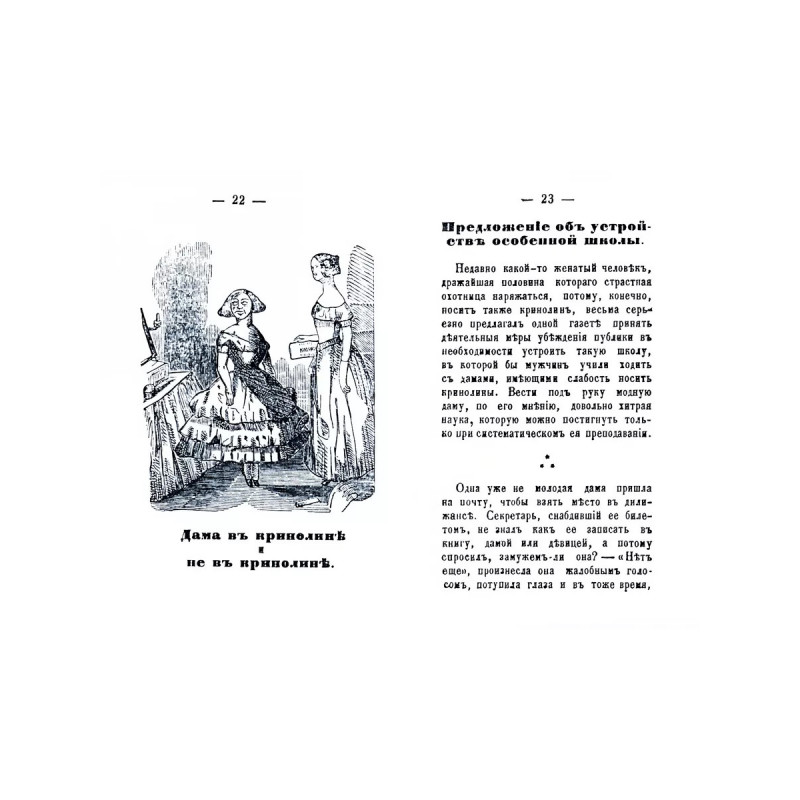 Кринолин и круглые шляпы. Репринт с издания. Анекдоты для друзей и недрузей Кринолина. Санкт-Петербург, М. Эттингер, 1858. С илл. Кринолин жёсткая структура, предназначенная для придания юбке требуемой формы. Тираж 30 экз. выполнен по технологии print-on-demand.