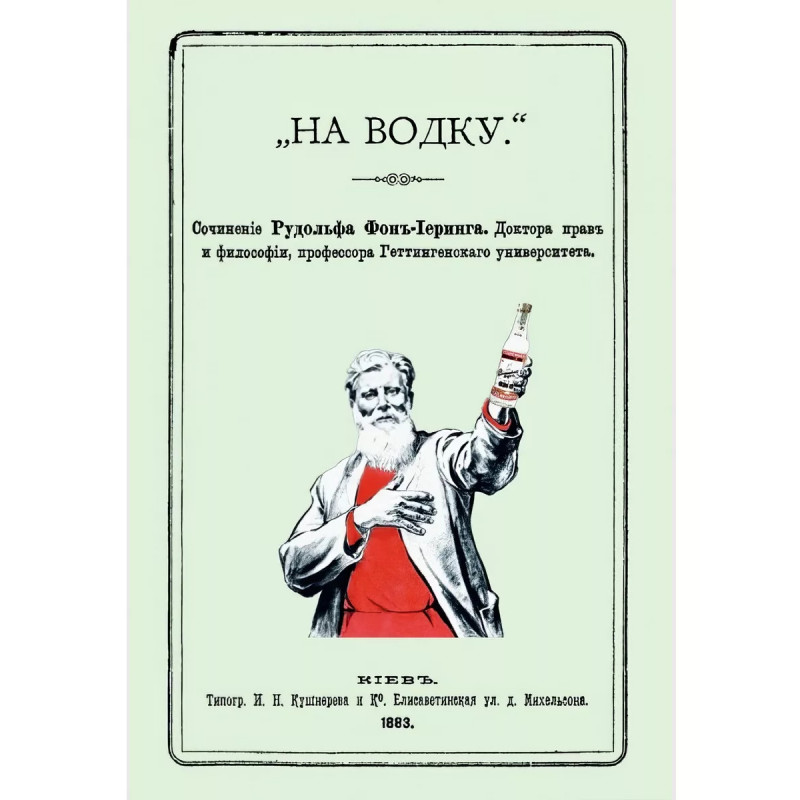 На водку. Иеринг Рудольф фон. Репринт с издания. Киев, 1883. Иеринг Рудольф фон - доктор прав и философии, профессор Геттингенского университета. Автор исследует обычай давать "На водку", "на чай" (мелкие взятки). Рассматривает историю и причины обычая, указывает его несправедливость и вредное нравственное влияние, призывает общество на борьбу с ним и указывает средства для этой борьбы. Книга изготовлена по технологии "печать по требованию". Тираж 30 экз.