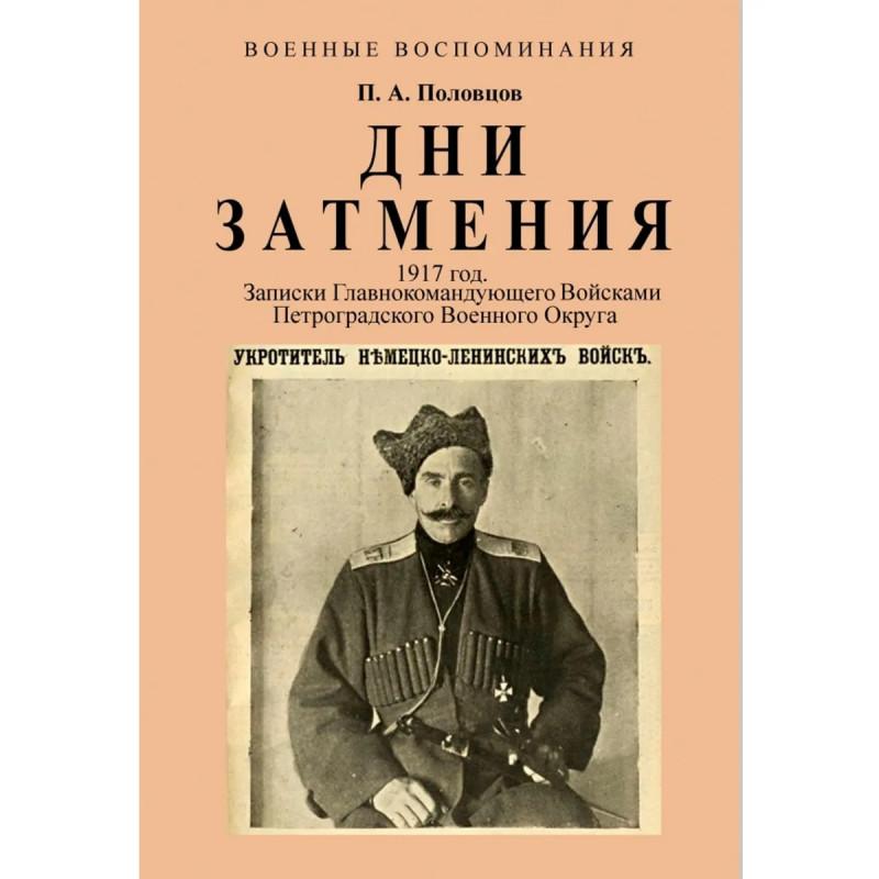 Половцов Пётр Александрович - сын государственного секретаря действительного тайного советника А.А. Половцова. В феврале 1917 г., находясь в отпуске в Петрограде, принял активное участие в революционных событиях. Включен в состав военной комиссии Временного правительства. В апреле 1917 г. вернулся на фронт, произведен в генерал-майоры и в мае 1917 назначен главнокомандующим войсками Петроградского военного округа. Руководил подавлением июльского выступления большевиков. В июле 1917 отстранен от должности и назначен в распоряжение военного министра. В сентябре 1917 назначен командующим Кавказского туземного конного корпуса. В октябре 1917 назначен военным губернатором Терской области и командующим в ней войсками. В годы Гражданской войны участвовал в Белом движении. Тираж 30 экз. выполнен по технологии print-on-demand.