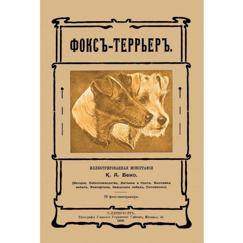 Репринт с издания. СПб., 1906. Шикарное издание! История, фокстерьера, собаководство, натаска и охота, выставки и экспертиза, устройство питомника собак. и т. д., реклама. 79 фотогравюр. Иллюстрированная монография К. А. Бено, члена - основателя и секретаря Русского Общества Любителей Фокс террьеров и Такс, действительного члена Австро-Венгерского и Германского Фокс-террьер клубов, Германского кружка заводчиков Фокс-террьерови Финского Кеннель клуба. Тираж 30 экз. выполнен по технологии print-on-demand.