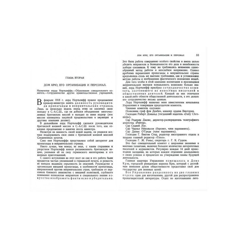 Репринт с издания. Москва, Ленинград, 1928. Книга написана одним из основных руководителей английской политической работы по разложению своих противников К. Стюартом. Он был во время войны заместителем лорда Нортклиффа, директора Управления по пропаганде в неприятельских странах и председателем комитета при этом Управлении. В книге мы имеем достаточно подробное изложение организации, политических принципов, методов и техники проведения той работы, которую автор называет кратко «пропагандой» и «политической диверсией». Оглавление: Глава I Пропаганда; правильное применение и злоупотребление ею; Глава II Дом Крю; его организация и персонал; Глава III Кампания против Австро-Венгрии; Глава IV Кампания против Германии; Глава V Признания неприятеля; Глава VI Совместная работа союзников; Приложение: „Памятная записка" Г. Уэльса.