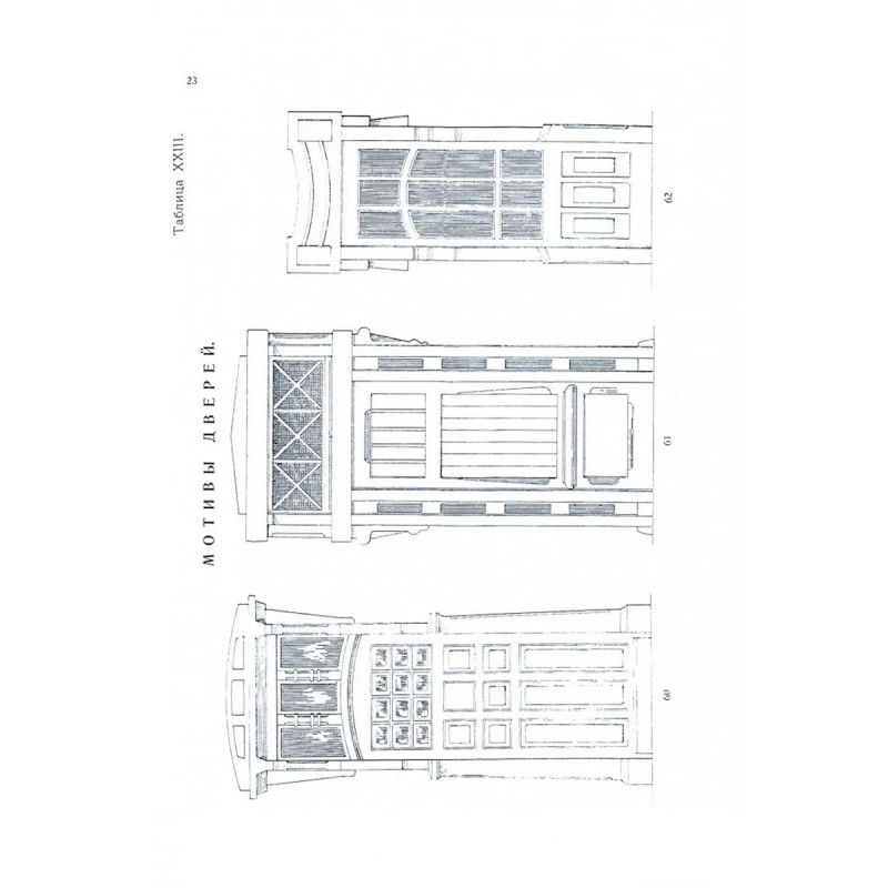 Репринт с издания. Петроград, 1915. Чертежи архитектурных деталей. Альбом рисунков окон и дверей с их наружной обработкой в деревянных строениях. Большинство чертежей надо рассматривать, как материал, как мотивы при выборе того или другого рисунка окон и дверей, соображаясь с общим стилем постройки. В альбоме - типы «трехстанковых» окон для столовых и кабинетов, мотивы окон, пригодных для служебных помещений и чердаков; мотивы подоконных корзин для цветов; мотивы выпускных окон-фонарей, мотивы всевозможных дверей, как однопольных, так и двупольных, а также комбинации светлых дверей с полуоконками но сторонам; мотивы обработки наружных балконов, баллюстрад; большой выбор всякаго рода садовых оград, мотивы наружной обработки стены деревяннаго дома, мотивы садовых беседок. Все приведенные в альбоме мотивы, могут быть при желании бесконечно сварьированы или подробно разработаны в детальных чертежах для заказа по ним столяру.