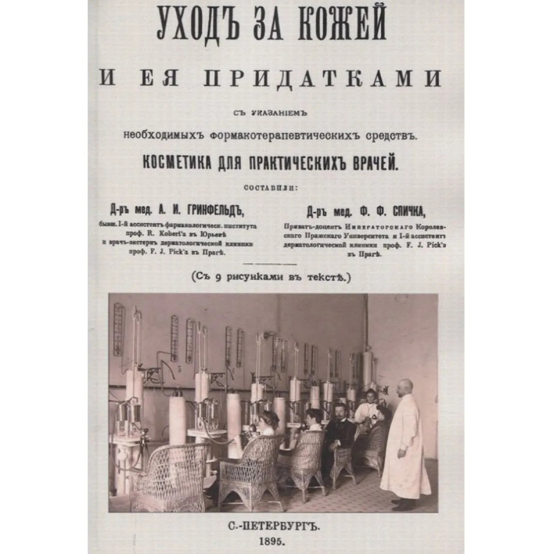 Репринт с издания. СПб., 1895. С илл. Книга составлена на основании европейских медицинских исследований, но адаптирована к отечественной культуре ухода за телом и русскому быту. Некоторые разделы: Анатомия и физиология кожи; Влияние внешней среды на состояние эпидермиса; Возрастные изменения кожи; Причины появления косметологических изъянов и заболеваний кожных покровов, методы лечения и коррекции внешнего вида; Уход за придатками кожи: волосами и ногтями. Составители: д-р мед. А.И. Гринфельд, ассистент Фармакол. ин-та проф. R. Kobert'а в Юрьеве, д-р мед. Ф.Ф. Спичка, прив.-доц. Имп. корол. Праж. ун-та. Тираж 12 экз. выполнен по технологии print-on-demand.