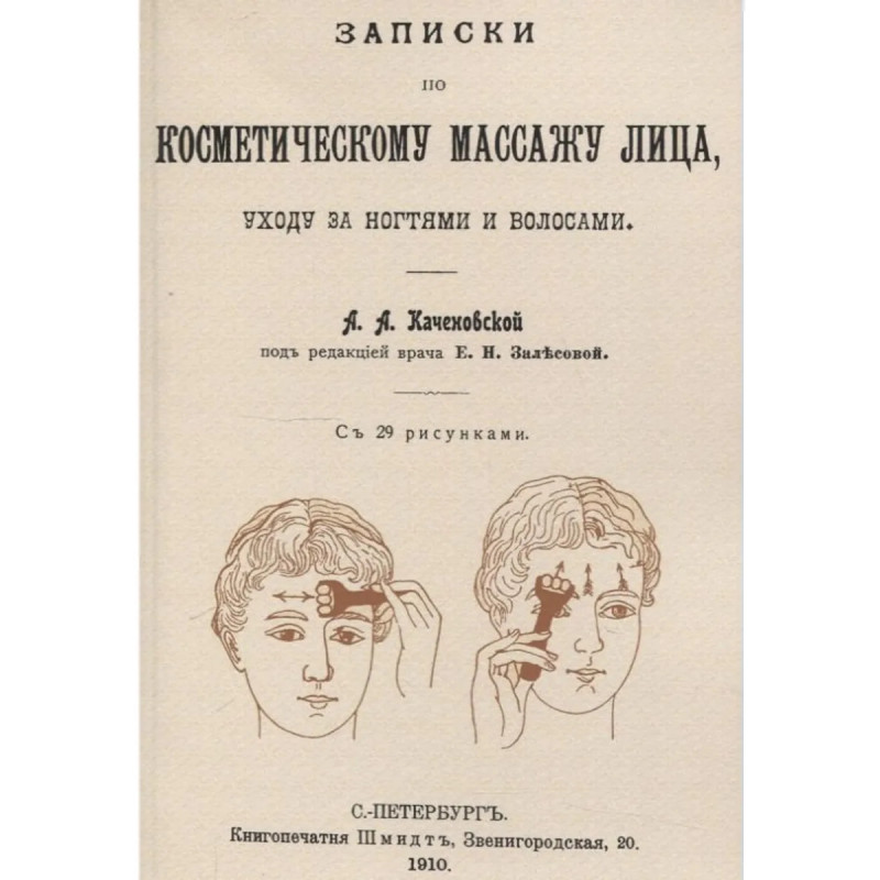 Репринт с издания. СПб., 1910. Под ред. врача Е.Н. Залесовой. С 29 рисунками. Приведены рецепты кремов. Рассмотрен электрический и вибрационный массаж лица, уход за шеей. Тираж 12 экз. выполнен по технологии print-on-demand.