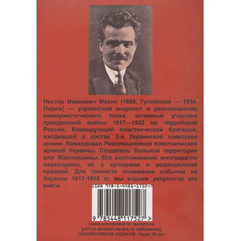 Фигура анархиста Нестора Махно (1889–1934) противоречива и неоднозначна. Батрак, рабочий, арестованный и сосланный за участие в революции 1905 года, организатор «Революционной повстанческой партии Украины», воевавшей и против войск Деникина и Врангеля, политик, на совести которого немало жестоких дел, человек мятущийся, многого так и не понявший, таким предстает Махно в своих воспоминаниях. Книга представляет интерес для широких кругов читателей.