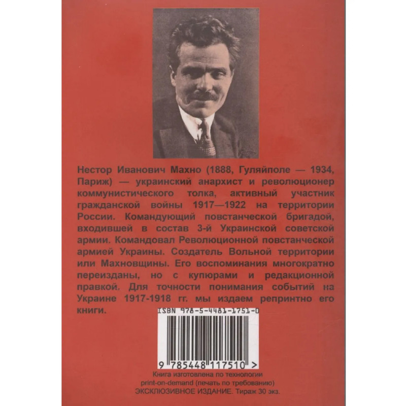 Махно Нестор Иванович (1888-1934) - украинский политический и военный деятель, анархист, организатор и руководитель революционного и освободительного движения на юге Украины во время Гражданской войны 1918-1922 годов.Вашему вниманию предлагается одна из трех частей воспоминаний великого бунтаря "Русская революция на Украине". В ней повествуется о том, как русская революция проходила на территории Украины, и в частности, в Гуляйполе.Сам "Батько" писал: "...очерк вполне отвечает исторической правде о Русской Революции вообще и о нашей роли в ней. Против этой правды могут кричать только те из "знатоков" Русской Революции описываемого мною в настоящем очерке периода, которые, практически и полностью не принимали участи во всех изгибах Революции...".Издание вызовет интерес у широкого круга читателей.