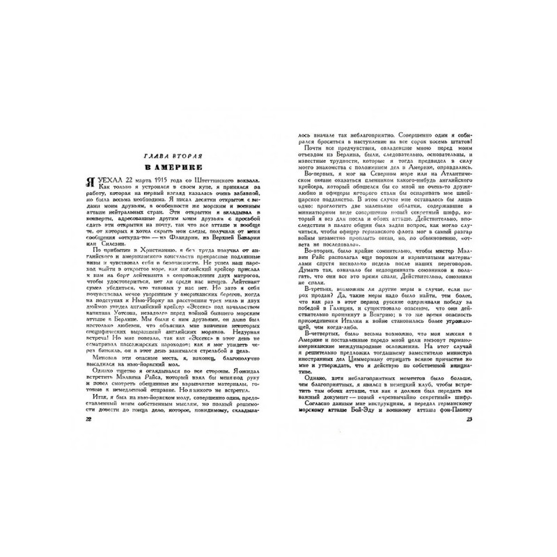 Репринт с издания. Москва, Воениздат, 1943. Франц фон Ринтелен Franz Dagobert Johannes von Rintelen (1878 – 1949). С 1903 г. служил на флоте. Звание - капитан 3-го ранга. В 1915 г. как швейцарский гражданин Эмиль В. Гаше заслан в США для саботажа военных поставок США в страны Антанты. Кроме диверсий в Америке фон Ринтелен планировал поднять забастовочное движение на военных заводах. В августе 1915 года он был арестован в Англии, куда пытался въехать на голландском судне с швейцарским паспортом. Выдан в 1917 г. Соединенным Штатам и попал в федеральную тюрьму. По окончании войны отбыл наказание и вернулся в Германию в 1921 г. При Гитлере Ринтелен, враждебно отнесся к нацистам и эмигрировал в Англию, под фамилией фон Клейст. Он был интернирован 4 сентября 1939 года в связи с подозрением в шпионаже. Выпущен после войны. Умер в 1949 году в Лондоне. Тираж 30 экз. выполнен по технологии print-on-demand.