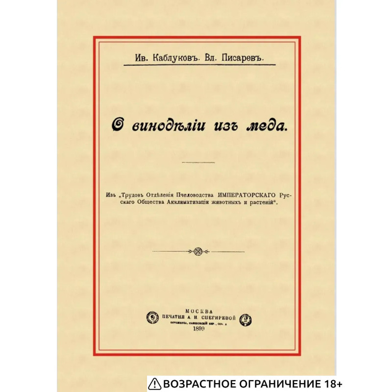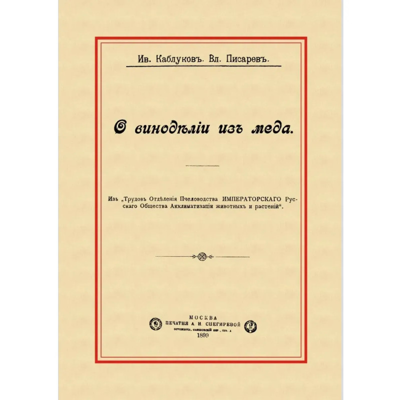 Репринт с издания. Москва, печ. А. И. Снегиревой, 1899. Из `Трудов Отделения пчеловодства Императорского Русского Общества акклиматизации животных и растений` Каблуков, Иван Алексеевич - химик, родился в 1857 г. По окончании курса в Московском университете в 1880 г. был оставлен при нем для приготовления к профессорскому званию по кафедре химии. В 1881 - 1882 годах был командирован в Петербургский университет для слушания лекций и занятий в лаборатории у профессора А.М. Бутлерова и там открыл новый способ получения оксиметилена ("Журнал Русского Физико-химического Общества", 1881). «В своем сообщении я имею целью обратить внимание членов нашего Общества и между ними главным образом членов Отделения пчеловодства на то значение, какое может иметь культура чистых дрожжей в деле приготовления вина из меда. Этот вопрос тем более заслуживает внимания, что в последнее время нередко слышатся жалобы на то, что пчеловодам нет сбыта меду, цена на мед слишком низка и т. п.». Тираж 30 экз. выполнен по технологии print-on