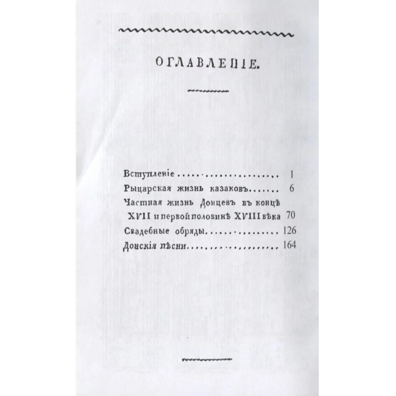 Репринт с издания СПб., 1824 г. Содержание: Вступление, Рыцарская жизнь казаков, Частная жизнь Донцев в конце XVII и первой половине XVIII века, Свадебные обряды, Донские песни с нотами. Василий Дмитриевич Сухоруков (Сухорукой) (1795—1841) — российский историк, офицер, участник Русско-турецкой войны 1828—1829 гг. Книга изготовлена по технологии "печать по требованию". Тираж 30 экз.