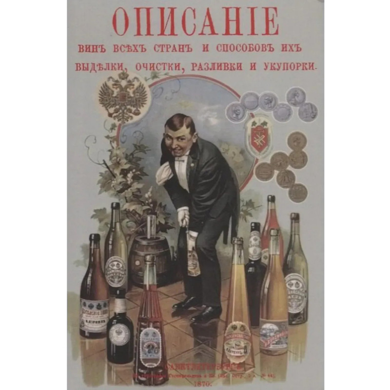 Репринт с издания. Тираж 30 экз. выполнен по технологии print-on-demand. Перевод с англ. К. Н. П. - Санкт-Петербург, тип. Гогенфельдена и Ко, 1870. Полное название: Описание вин всех стран и способов их выделки, очистки, разливки и укупорки, указание устройства погребов для сохранения вин и других напитков, с присовокуплением подробных рецептов для приготовления банкетных, гастрономических и разных прохладительных напитков новейшего времени, а также водок, ликеров, сиропов и эссенций и пр. и пр. и пр. Огромное колл. иностранный рецептов крепких напитков того времени. Книги нет в библиотеках Москвы.