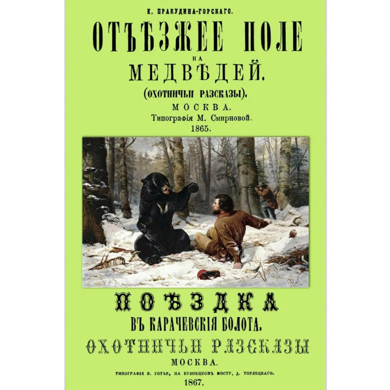 Репринт с издания. Москва 1865. Пракудин-Горский Егор Сергеевич. По профессии — лесничий (город Покров Владимирской губернии). Много работал в литературе, был одним из самых деятельных сотрудников первого русского «Журнала охоты» Г. Мина. В этом журнале печатались его рассказы: «Стрельба вальдшнепов на осеннем перепутье» (1858, № 7) «Осень и отъезжее поле» (1859, № 11), «Охота на медведя» (1862, № 4), «Иван Петрович и его наблюдатели» (1862, № 5). Автор книг: «Поездка в Карачевские болота» (М, 1867) и «Отъезжее поле на медведей» (М., 1865). Автор книги был близко знаком со многими знаменитыми охотниками и писателями России и неоднократно устраивал медвежьи охоты для Императора Александра II. Тираж 30 экз. выполнен по технологии print-on-demand.