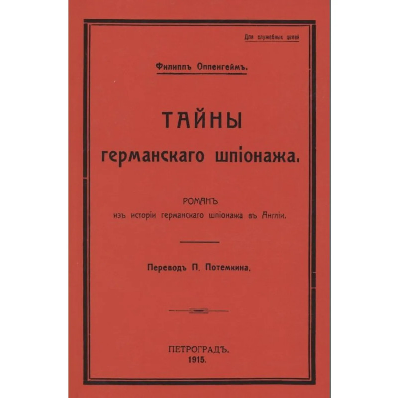 Репринт с издания. Петроград, 1915. Эдвард Филлипс Оппенхейм (Edward Phillips Oppenheim; 1866—1946) родился в семье скорняка в Leicester. Он не получил серьезного образования, и с раннего возраста, в течении 20 лет, работал в компании отца по производству кожи, а по ночам сочинял романы. Первый роман Оппенхейма «Искупление», был издан в 1887 и сразу же принес писателю популярность, он был экранизирован в 1922. Издав около 30 книг, в 1906 40-летний Оппенхейм, наконец, продал отцовский бизнес и поселился на Французкой Ривьере, где вел роскошный образ жизни, устраивая приемы на своей яхте, а в свободное время наведываясь в Монте-Карло. Оппенхеймер был единственным писателем 20 века , кто держал у себя на службе одновременно секретаря, лакея, шофера, массажиста и маникюршу. Всего перу плодовитого писателя принадлежит 37 сборников рассказов и 115 романов, 5 из них вышло под псевдонимом Энтони Партридж. Оппенхейму сопутствовал невиданный материальный успех. Сам он гордо называл себя гордо именовал себя «prince of s