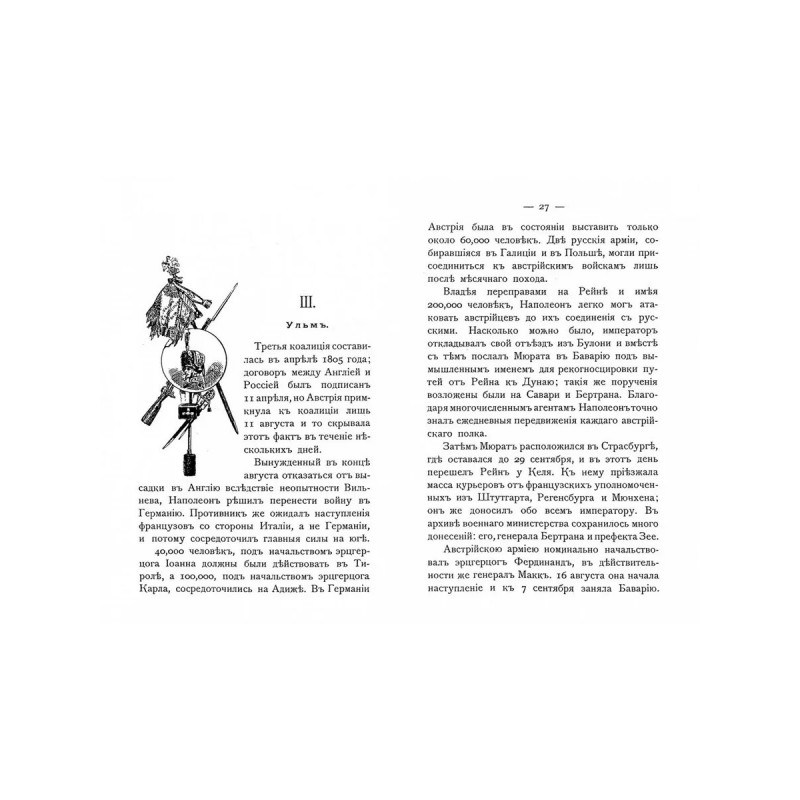 Репринт с издания. С.-Петербург, 1867. Карл Людвиг (Шарль Луи) Шульмейстер (1770-1853) — офицер французской армии и тайный агент Наполеона. Родился в Эльзасе, потому прекрасно говорил по-французски и по-немецки, а также, внезапно, по-венгерски. Научился светским манерам - танцам-шманцам, фехтовать, десять умных фраз и пр. На жизнь добывал себе контрабандой. В 1799 году делишки свели его с Савари, другом и слугой Буонапарте, который занимался "секретами генерала" (а потом императора). Эта дружба позволила Шульмейстеру поучаствовать в похищении герцога Энгиеннского, которым руководил Савари. На следующий год Шульмейстер - уже цыганский барон венгерский аристократ, убедивший австрийского командующего барона Мака, что "у него большие связи во Франции", и без него войну не выиграть. Именно из-за веры в "венгерского друга" Мак сидел в Ульме и ждал, когда стопятьсоттыщ союзников придут к нему на помощь - ему печатали специальные французские и немецкие газеты про то, как "враги бегут вездепобиты". После сдачи Ульма Ш