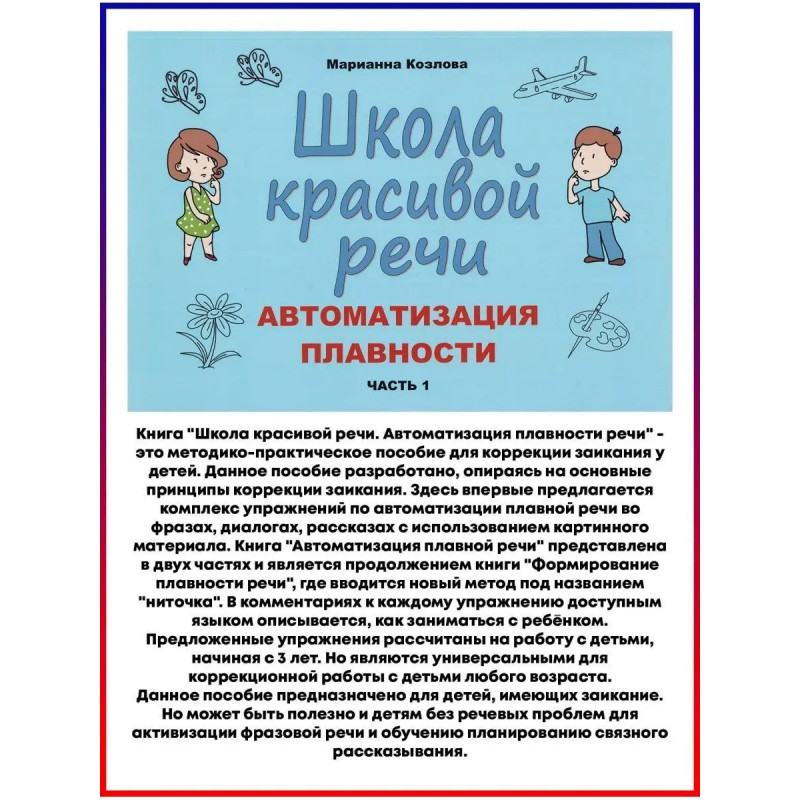 Книга "Школа красивой речи. Автоматизация плавности речи" - это методико-практическое пособие для коррекции заикания у детей. Данное пособие разработано, опираясь на основные принципы коррекции заикания. Здесь впервые предлагается комплекс упражнений по автоматизации плавной речи во фразах, диалогах, рассказах с использованием картинного материала. Книга "Автоматизация плавной речи" представлена в двух частях и является продолжением книги "Формирование плавности речи", где вводится новый метод под названием "ниточка". В комментариях к каждому упражнению доступным языком описывается, как заниматься с ребёнком. Предложенные упражнения рассчитаны на работу с детьми, начиная с 3 лет. Но являются универсальными для коррекционной работы с детьми любого возраста.Данное пособие предназначено для детей, имеющих заикание. Но может быть полезно и детям без речевых проблем для активизации фразовой речи и обучению планированию связного рассказывания.