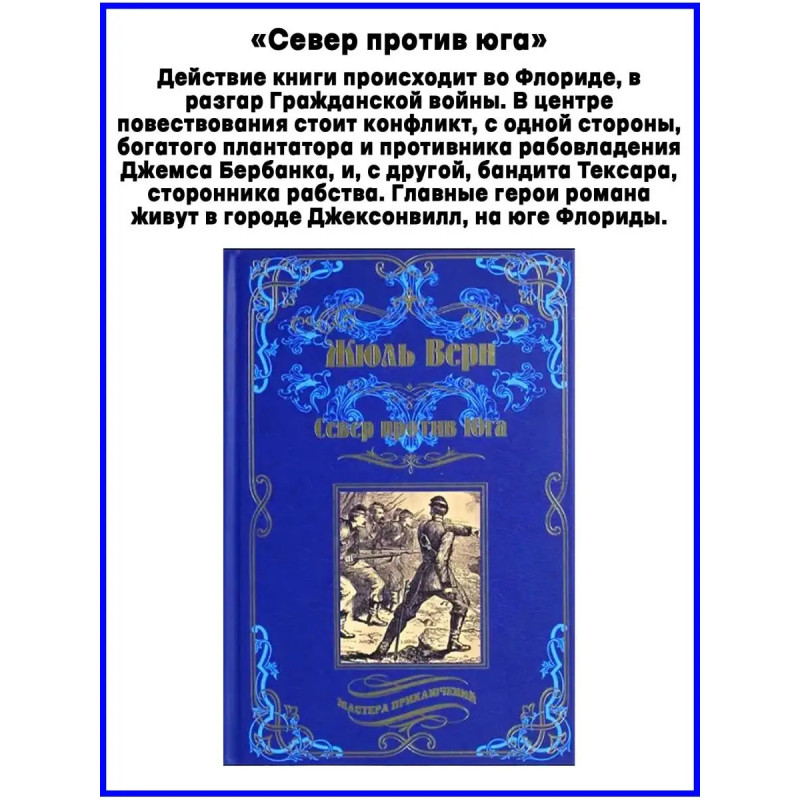 Февраль 1862 года. Второй год в Америке идет война между вольнолюбивым Севером и плантаторами Юга. Как всегда, решив воспользоваться нестабильной ситуацией, к власти начинают рваться отъявленные негодяи и висельники. Застарелая вражда между двумя непримиримыми противниками, сторонником свободы Бербанком и сторонником рабства Тексаром, грозит перерасти в кровавый мятеж. На стороне одного небольшая группа южан, симпатизирующих северянам. На стороне второго шайка флоридских головорезов и невероятная способность выходить сухим из любого судебного разбирательства, грозящего петлей. Уж не заговоренный ли он? В очередной том Жюля Верна входят две захватывающие истории из эпохи Гражданской войны в США роман с детективным сюжетом "Север против Юга" и повесть о морских приключениях "Сквозь блокаду". **ISBN:** 978-5-4484-3400-6